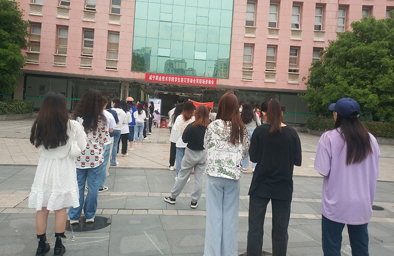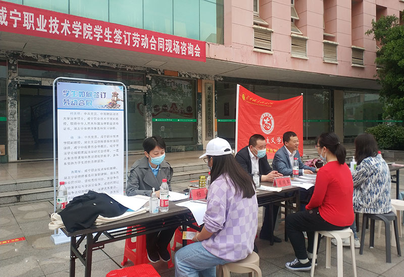 毕业在即,为即将走上工作岗位的学生提供更贴心的就业咨询服务,马克思主义学院和创业就业指导中心于4月23日上午,在文华广场举行 “咸宁职业技术学院学生签订劳动合同现场咨询会”。