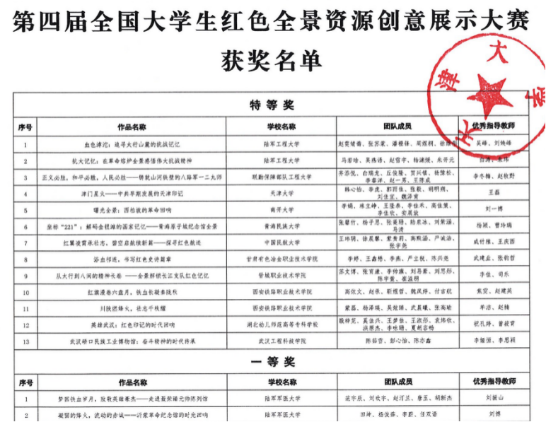 近日,由教育部课程思政教学研究示范中心(天津大学)、全国高校思政课虚拟仿真体验教学中心(天津大学)联合主办的第四届全国大学生红色全景资源创意展示大赛评选结果正式揭晓。咸宁职业技术学院马克思主义学院报送的3件作品在全国众多参赛高校中脱颖而出,全部荣获一等奖,展现了学院在红色文化育人、思政实践教学与数字化技术融合方面的突出成效。