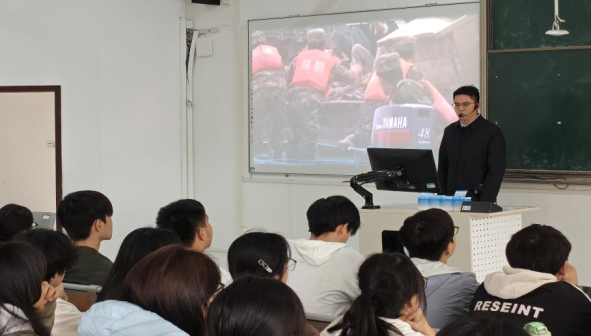为深化产教融合与校企协同育人,大力弘扬劳模精神、劳动精神与工匠精神,传承抗洪精神等“三大精神”,结合"技能校园"建设实际,我校马克思主义学院于11月11日特别邀请赤壁市烈士陵园保护中心曾铭、沈双敏,赤壁市疫情预防控制中心健康教育科副主任陈思思,嘉鱼县烈士陵园管理所讲解员刘彪等同志莅临我校,开展主题教育宣讲。200余名青年学子齐聚一堂,共同聆听这场浸润心灵的精神盛宴。