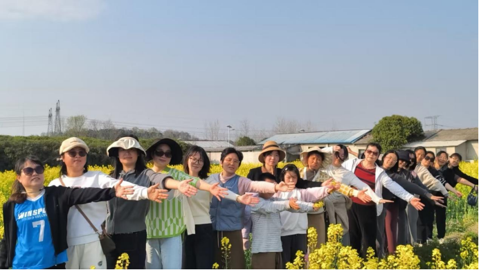 下午14时,参与活动的女教师在学校大门集合签到,统一拼车前往活动地点。一路上欢声笑语,大家心情愉悦,对即将到来的田园体验充满期待。队伍首先抵达马桥乡村油菜花基地,满目金黄花海次第铺展,春意盎然,美不胜收。女教师们或漫步花间,或驻足合影,用镜头定格春日里的美好瞬间。现场氛围轻松热烈。